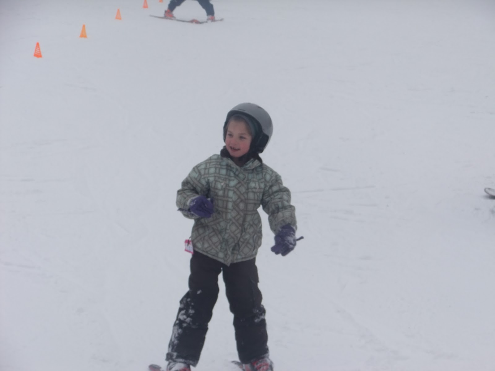 | Love Abbi's happy smile here! She was so happy and wanted to show everyone how she was skiing! |
