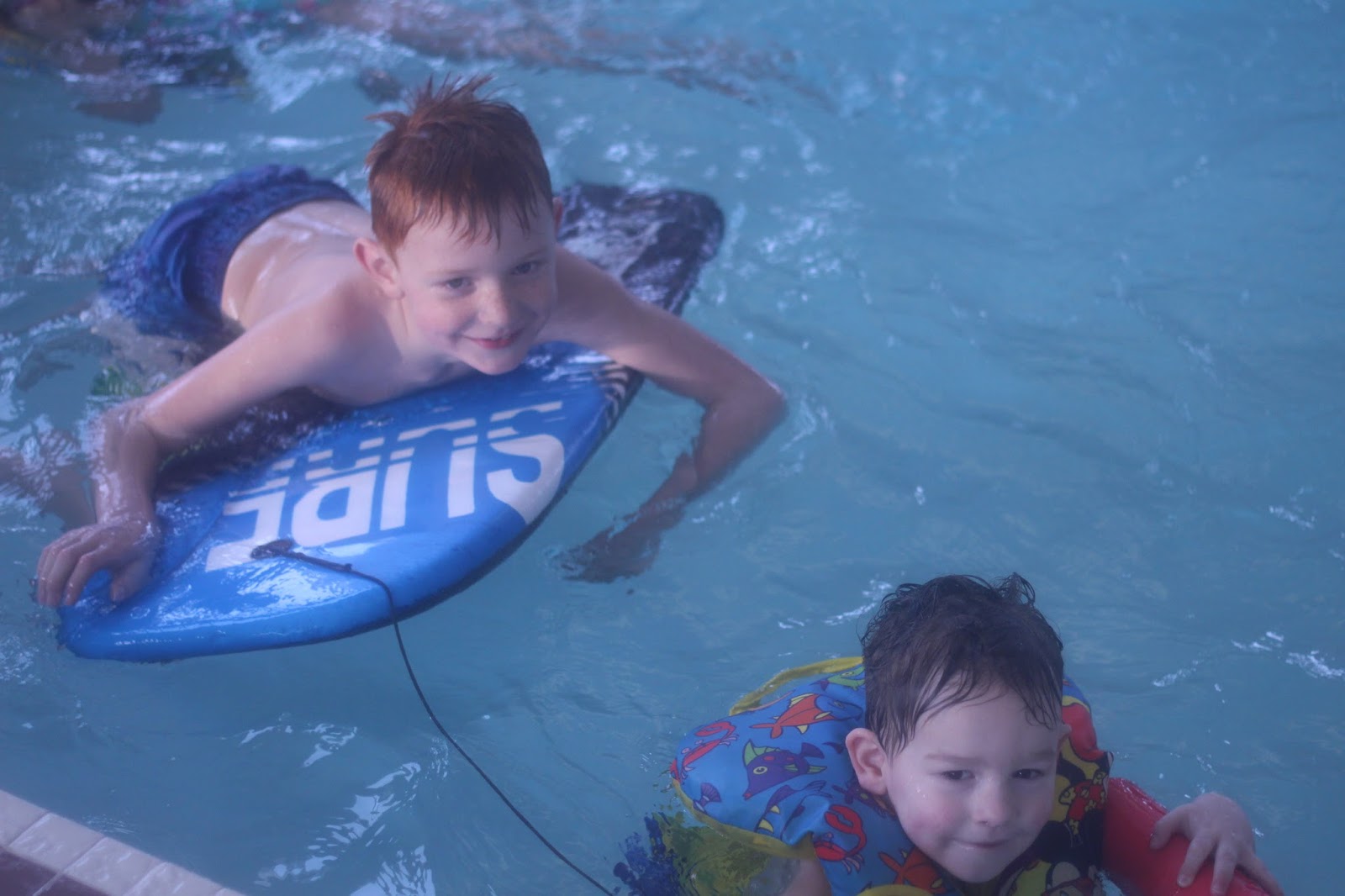 | DJ and Ethan swimming together. |